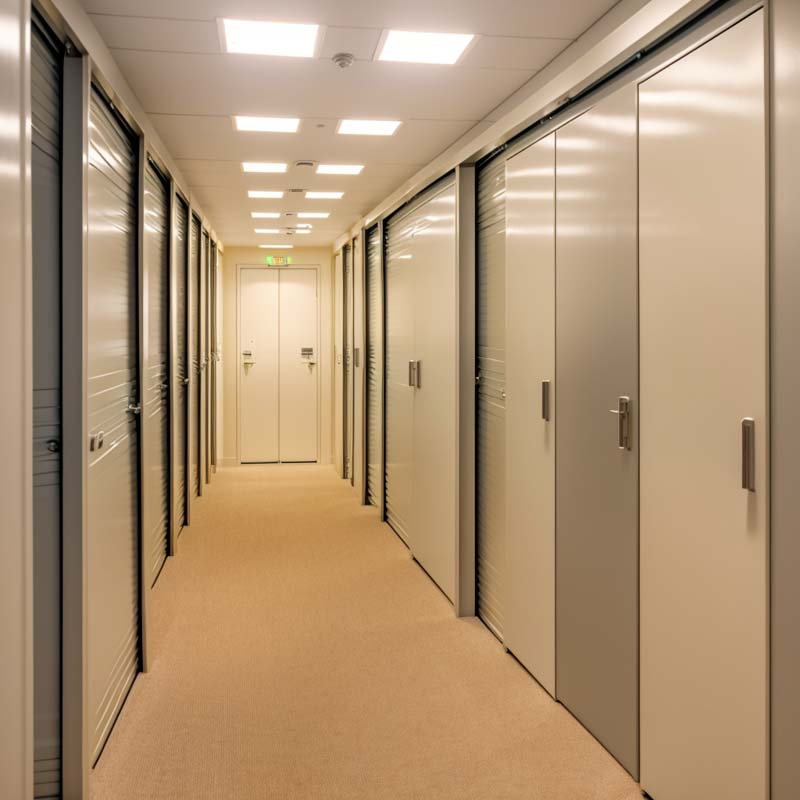 Komórki lokatorskie z drzwiami antywłamaniwym marki „Hormann RC2”.