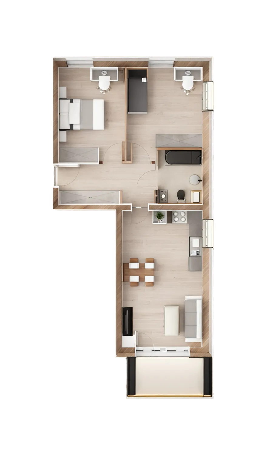 Stawiamy na nowoczesne i praktyczne rozwiązania, które zapewnią komfort życia mieszkańcom. Oferujemy mieszkania o powierzchni od 36 do 82 m², co pozwala na idealne dopasowanie lokalu do indywidualnych potrzeb. Ogromnym atutem jest fakt, że każde mieszkanie będzie miało własny taras, a z okien będą rozciągać się widoki na tereny zielone lub Martwą Wisłę. Zadbaliśmy również o bezpieczeństwo Twojego samochodu – w podziemnej hali garażowej znajduje się 108 miejsc parkingowych, a na zewnątrz dostępne są 39 miejsca postojowe naziemne.